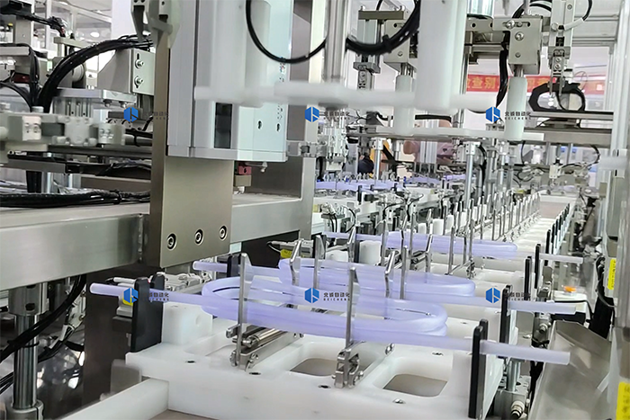 Catheter supply/stop clamp/connector automatic assembly
